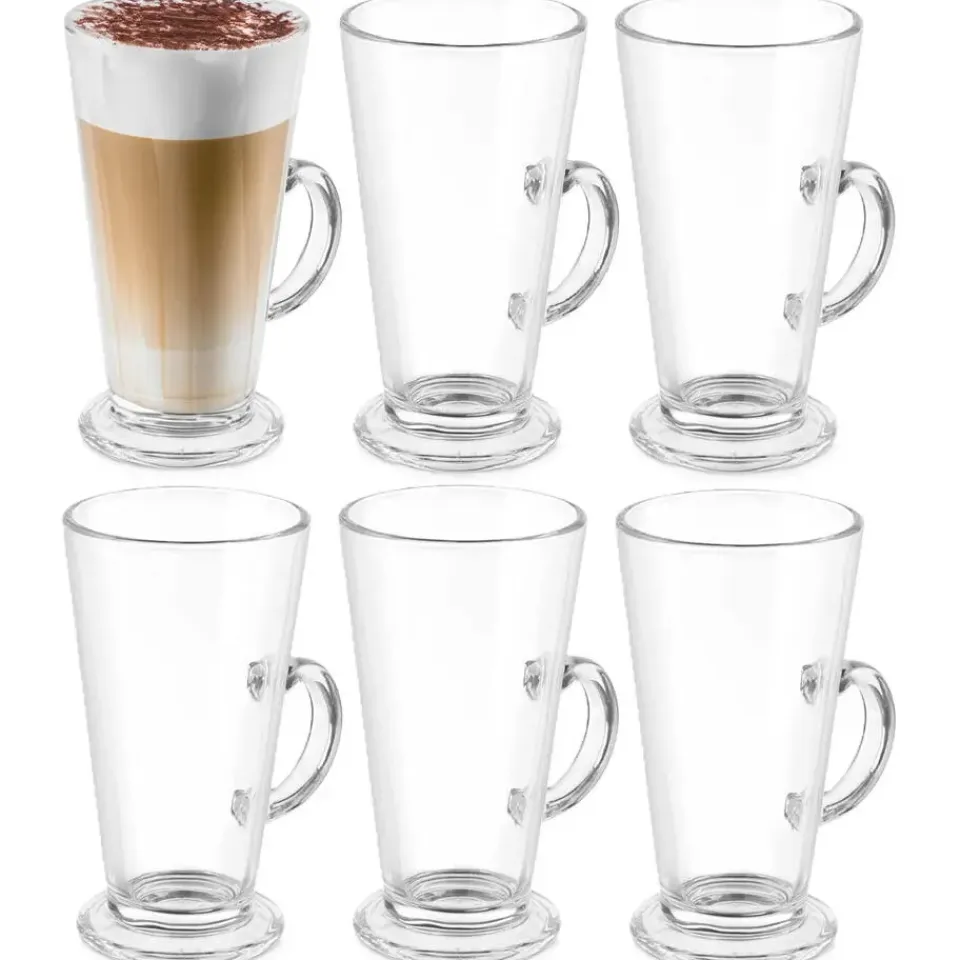 Vivalto Caffe Latte/macchiato/koffie glazen set model Paris, gemaakt van sierlijk helder transparant glas. Dit is de grote broer van de cappuccino. In deze verpakking 6x stuks van 280 ml. Mooi gevormde glazen voor in elke huishouden. De glazen zijn vaatwasser en magnetron bestendig.