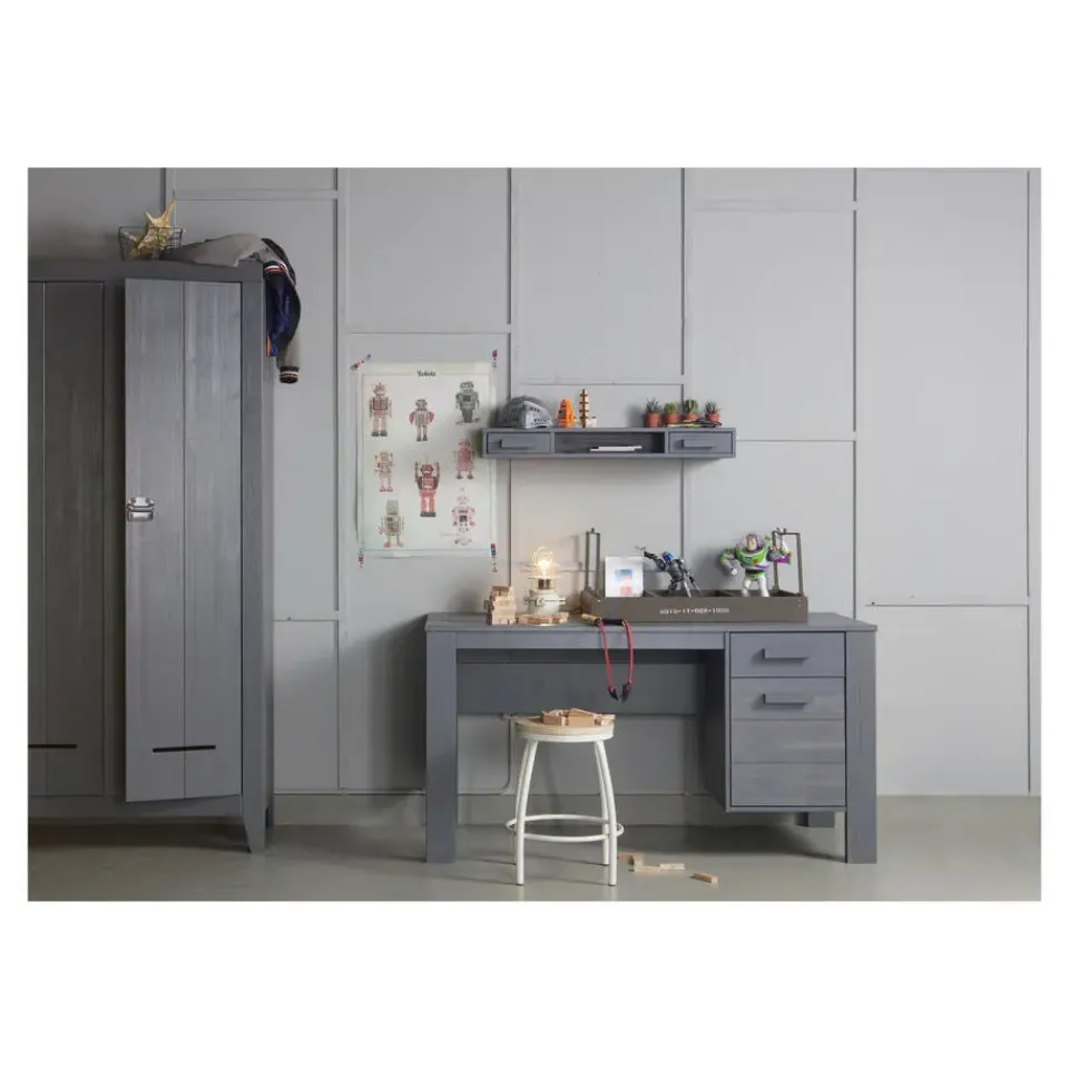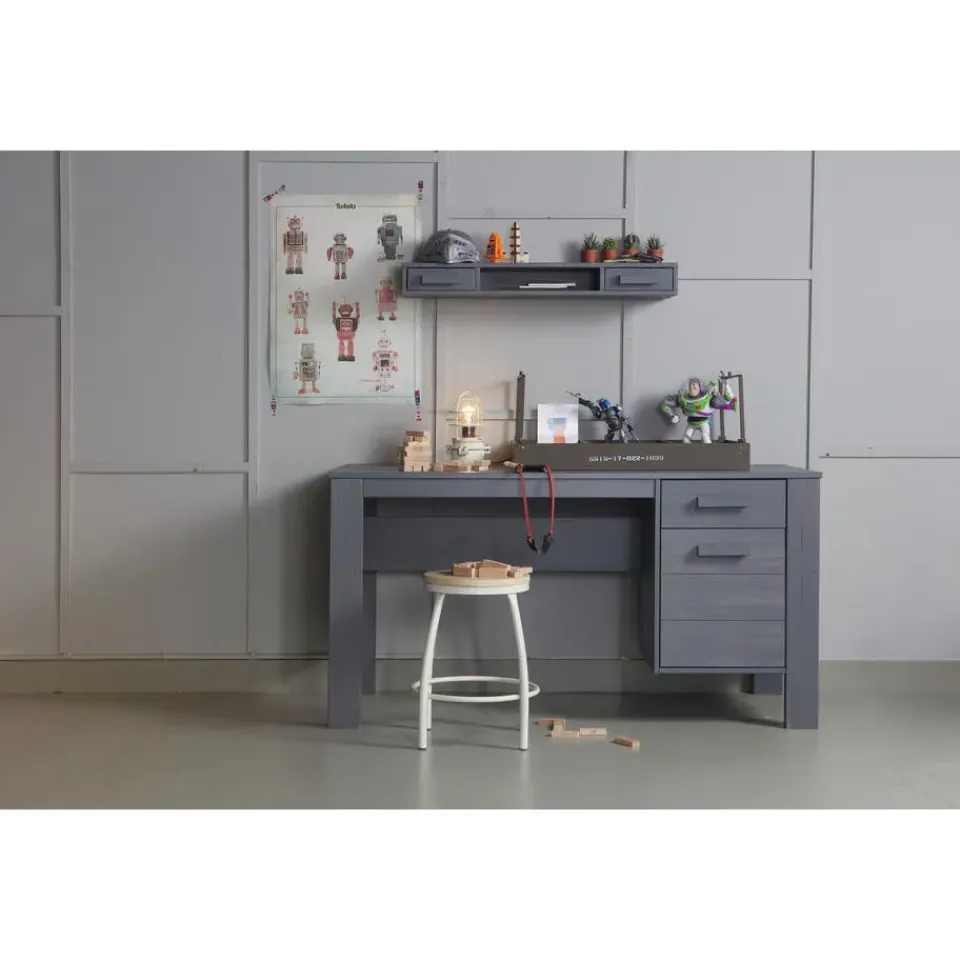 Dit stoere bureau met ingebouwde laden komt uit de collectie van WOOOD. Het bureau is gemaakt van grenenhout en heeft een geborstelde afwerking, waardoor het een unieke doorleefde uitstraling heeft. Het robuuste bureau voegt zich makkelijk in een eenvoudige werk- of kinderkamer.