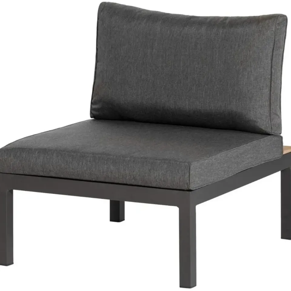 De La Vida loungeset van het Nederlandse merk WOOOD is dé relaxhoek voor de levensgenieter. Zoek de rust en buitenlucht op in de heerlijke hoekbank van teakhout en een frame van antracietgekleurd aluminium. Plaats deze royale hoekbank op een zonnige veranda voor waar relaxmoment en ervaar het luxe comfort.