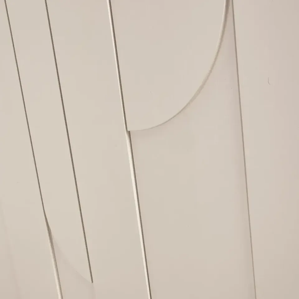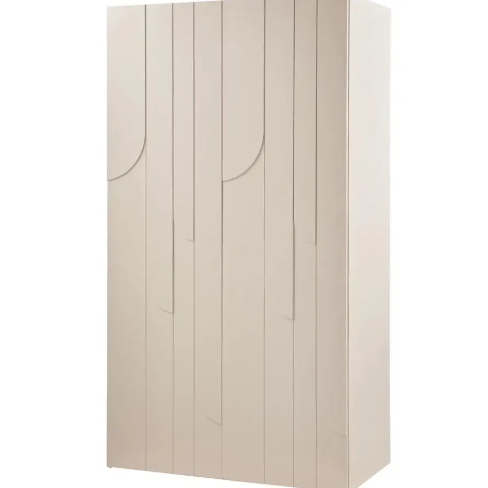 Het golvende patroon van regendruppels die langs de ramen naar beneden stromen, was de inspiratiebron voor het houtsnijwerk op de deuren van deze Rain 2-deurs kledingkast uit de collectie van het Nederlandse interieurmerk WOOOD. De stevige kast, gevormd uit grenenhout en afgewerkt in de kleur dust, combineert stijlvol en modern design.