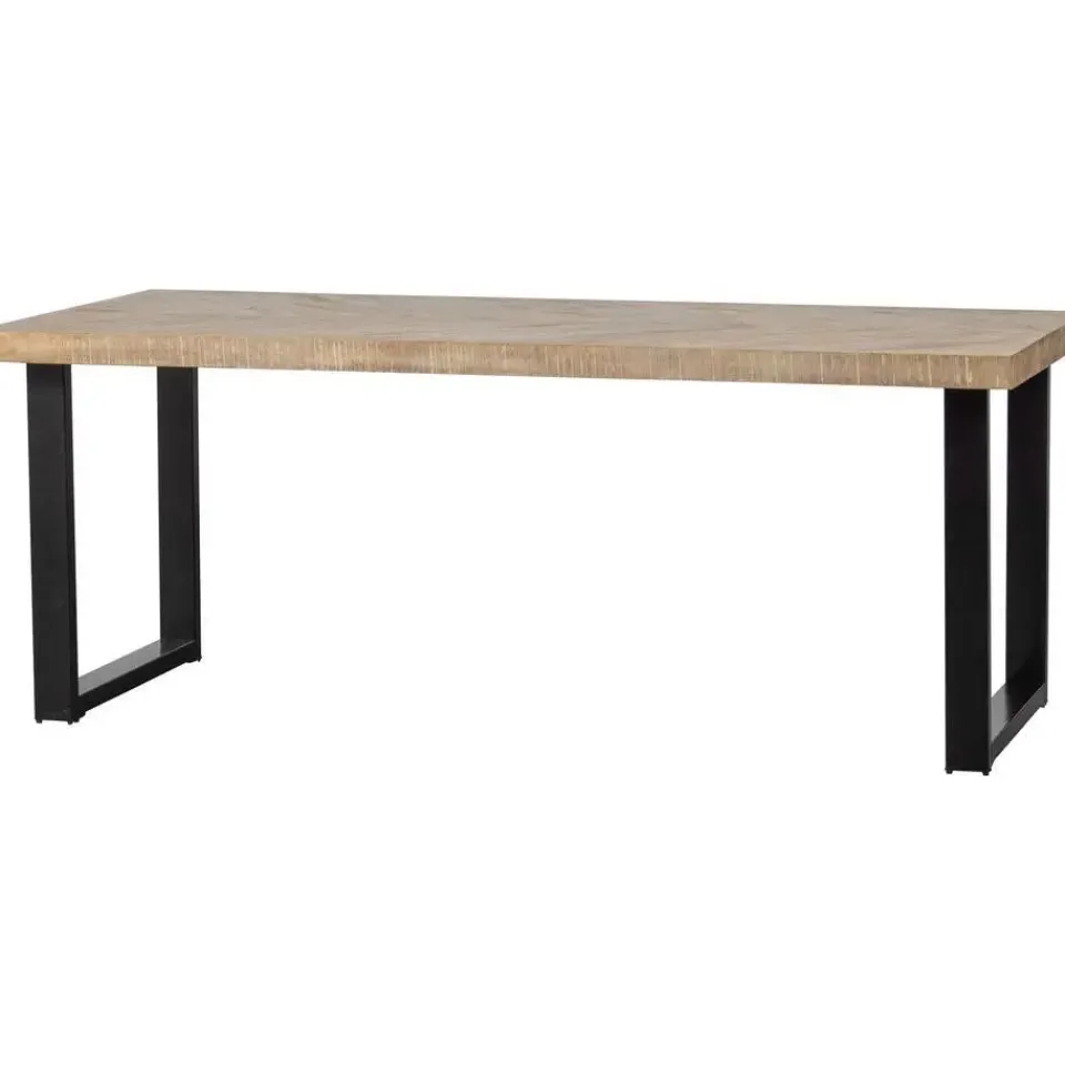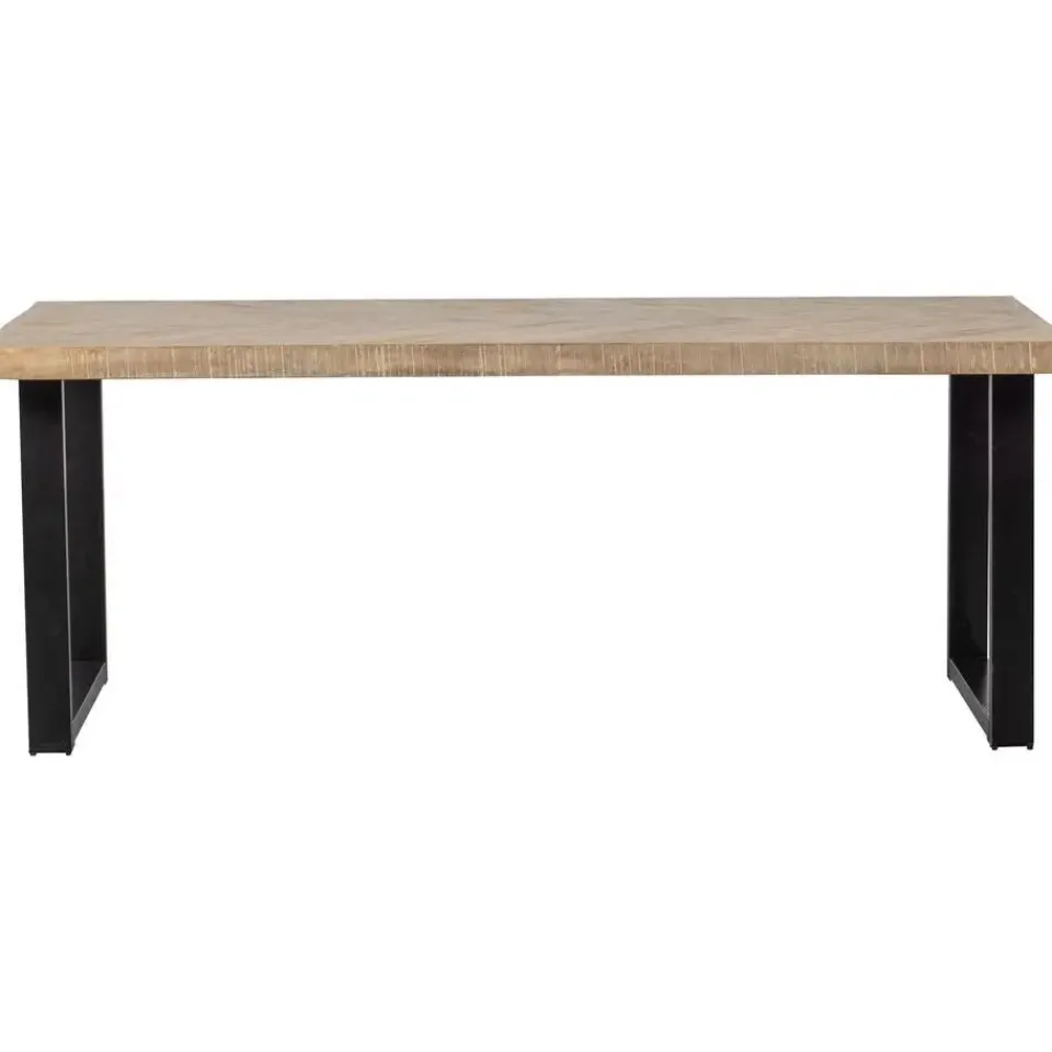 Deze mangohouten Tablo tafel heeft een lengte van 180 cm en een breedte van 90 cm, zodat je er gemakkelijk met 4-6 personen aan kunt zitten. Het blad is 5,5 cm dik en is voorzien van een prachtig visgraat patroon. Het tafelblad beschikt over een opdikrand aan alle vier de zijden.
