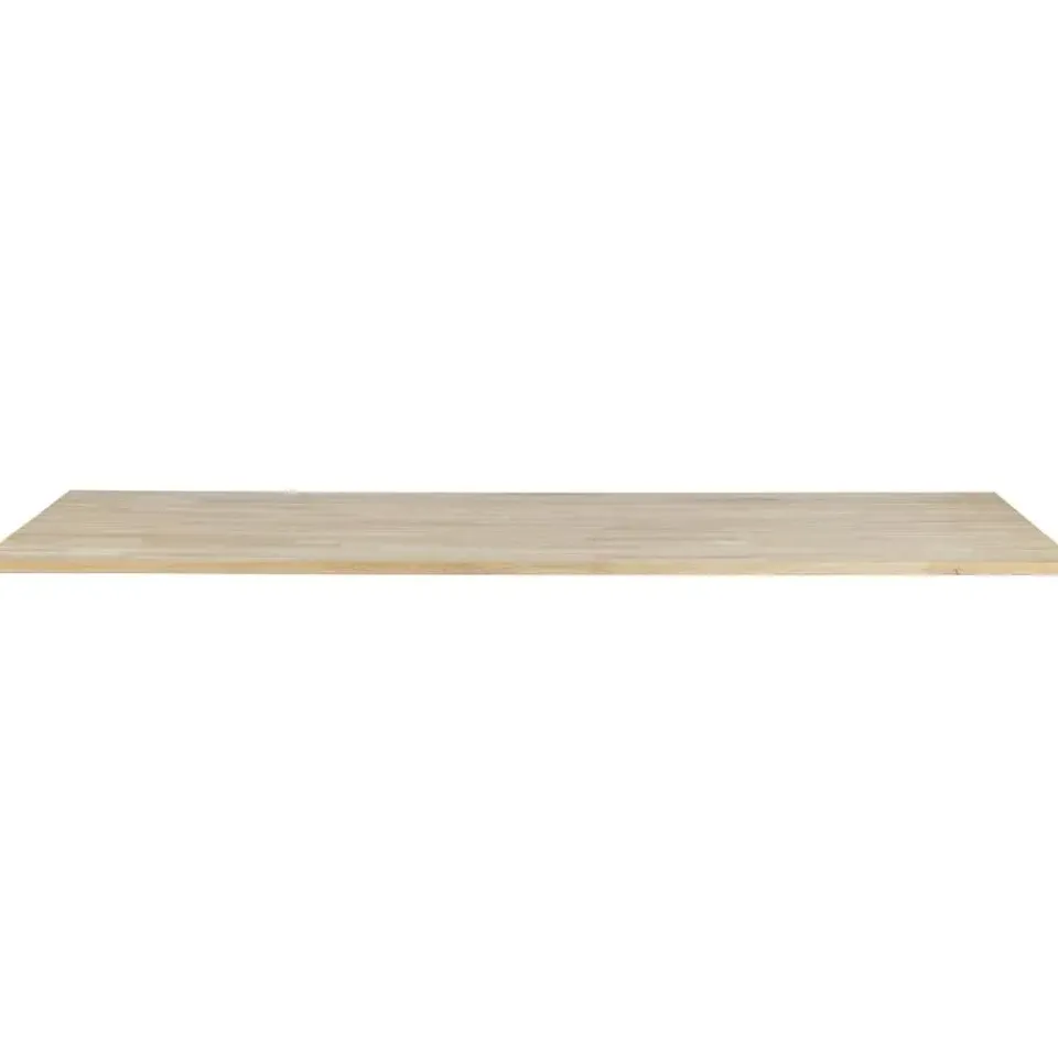 Dit rechthoekige tafelblad is onbehandeld en bestaat uit stroken eikenhout die d.m.v. een vingerlas houtverbinding zijn verlijmd. Het tafelblad heeft een lengte van 180 cm en een breedte van 90 cm. Het blad is 24 mm dik.
