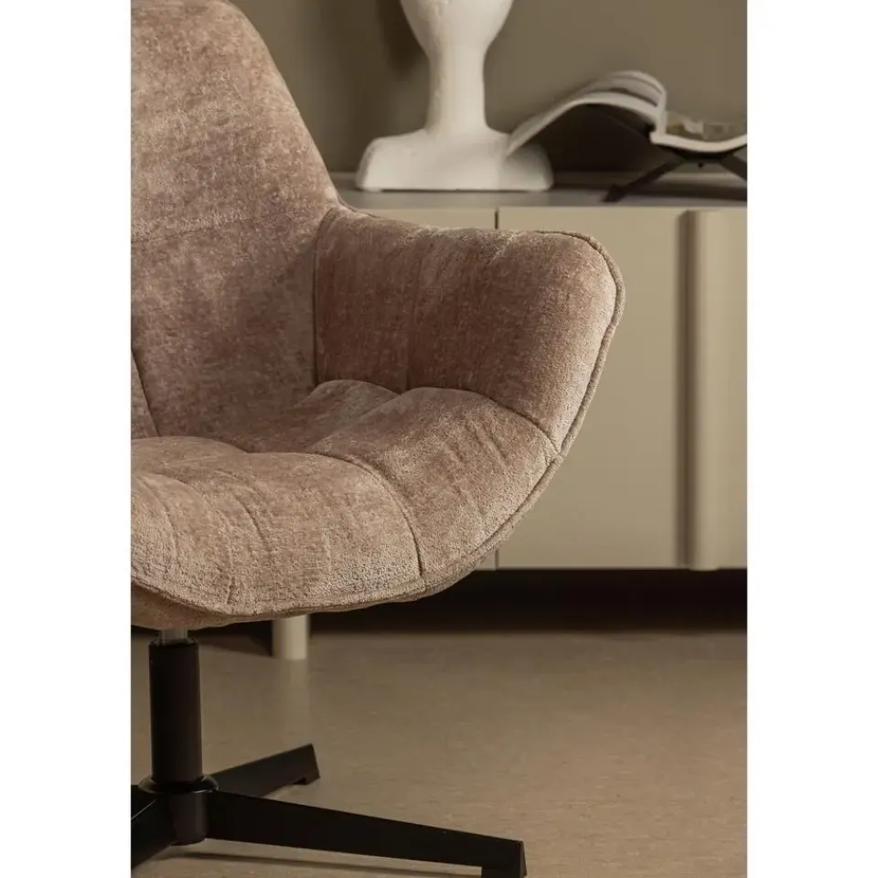 De Wibo draaifauteuil is bekleed met een chenille stof. Onze Angel chenille heeft een opvallende structuur, wat zorgt voor een luxe uitstraling en bijzondere glans. De stof is gemaakt van 100% polyester, wat het onderhoud zeer gemakkelijk maakt. De Angel voelt zacht aan en straalt warmte uit. De Martindale van deze chenille stof is niet getest.
